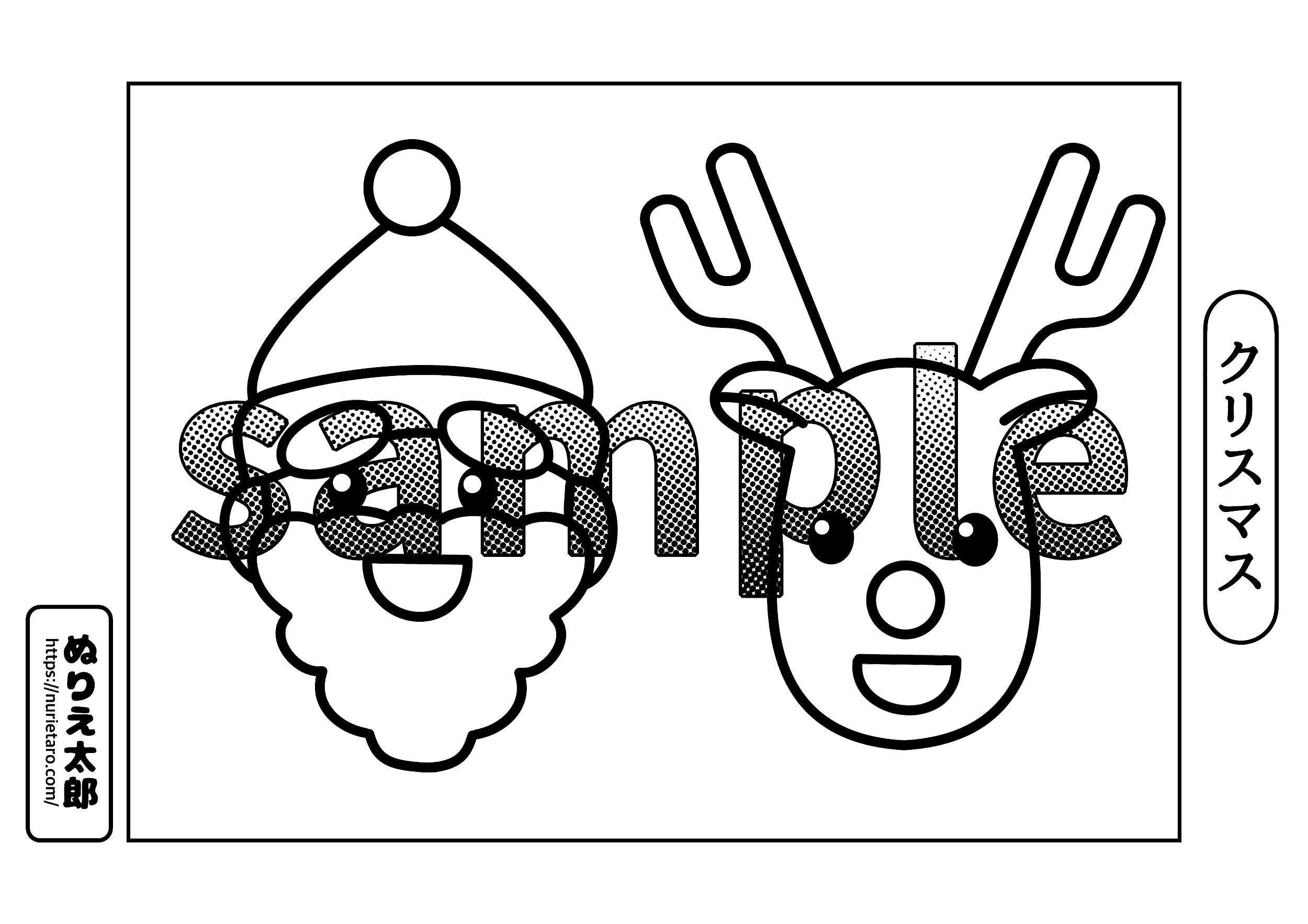 サンタとトナカイ 12月 2025/11/21 可愛らしくシンプルな”サンタとトナカイ”の塗り絵です♪ 皆さんのサンタは何色ですか? 昔のサンタは緑・青・茶色・白など今とは違う落ち着いた色が多かったとか…
